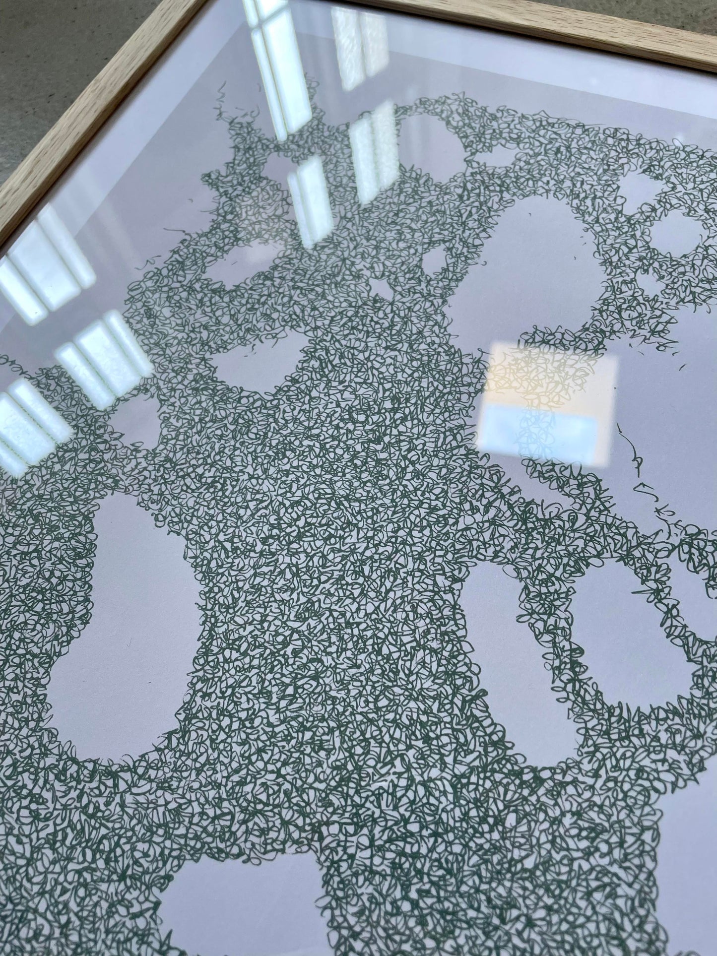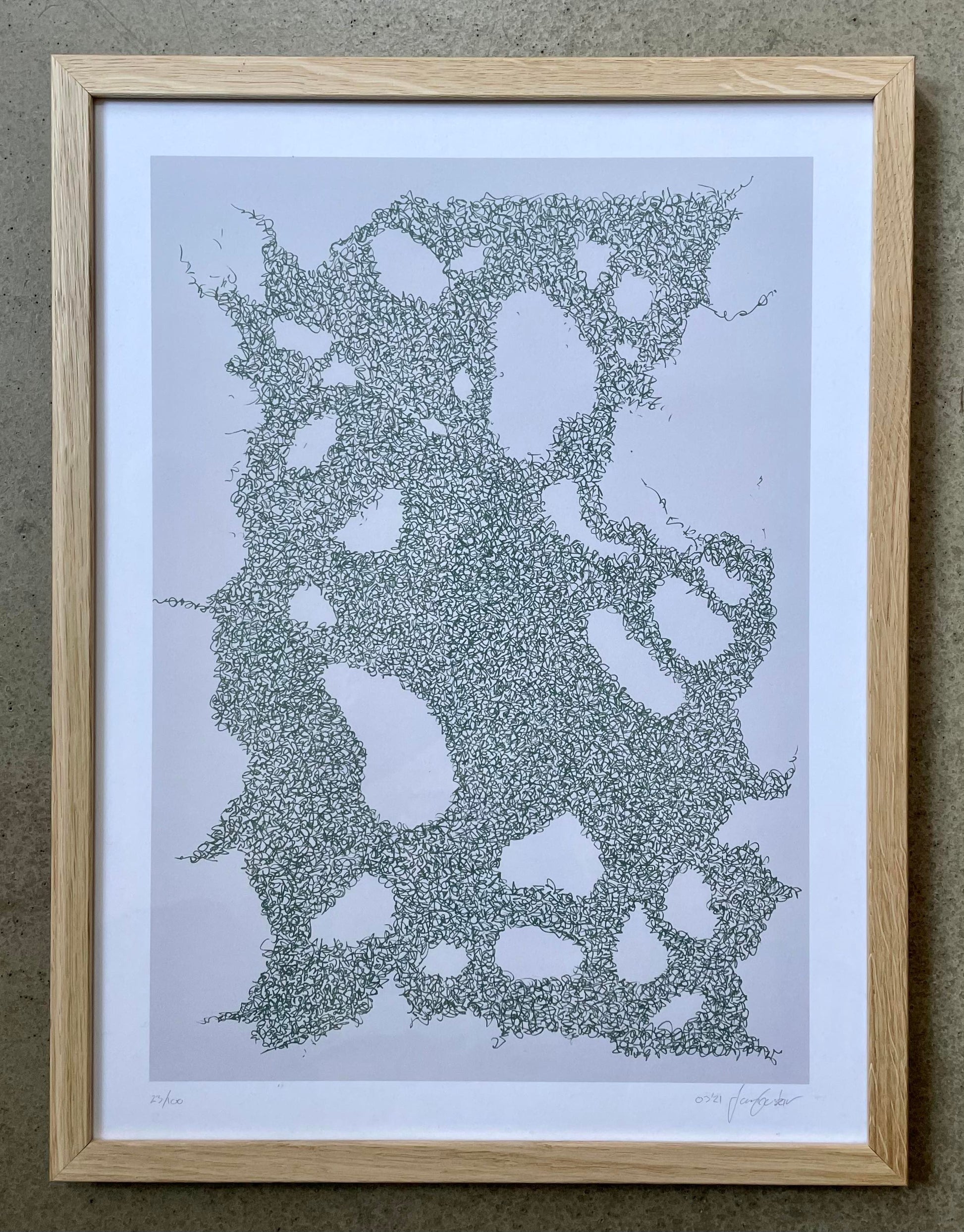 The poster is a hand drawn illustration, scanned and coloured in 3 different nuances; Moon, Salvia and Clay. The poster is offset printed on 200g white paper, each in only 100 copies, measures 30x40cm and is sold numbered and signed by the artist.