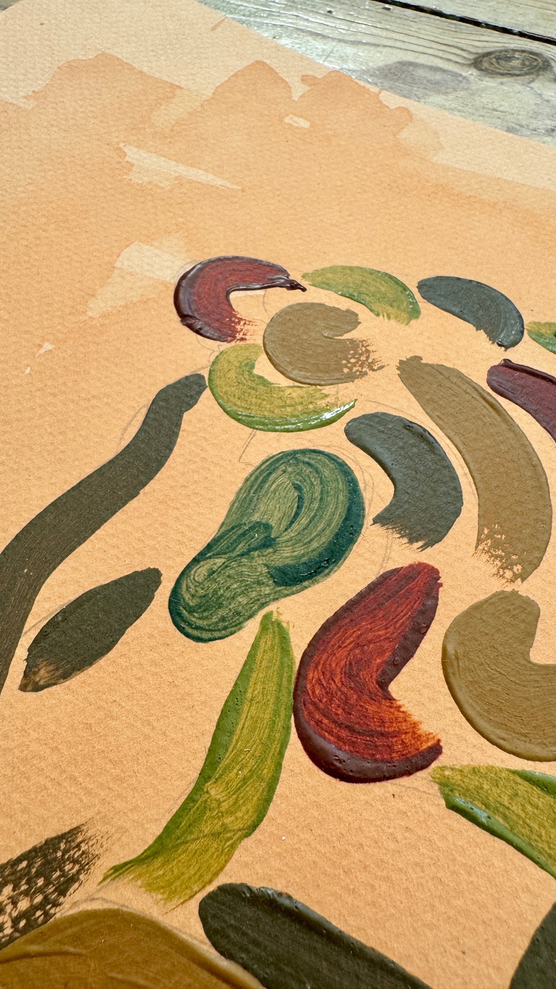Acrylic and pencil on toned paper, 30 × 40 cm