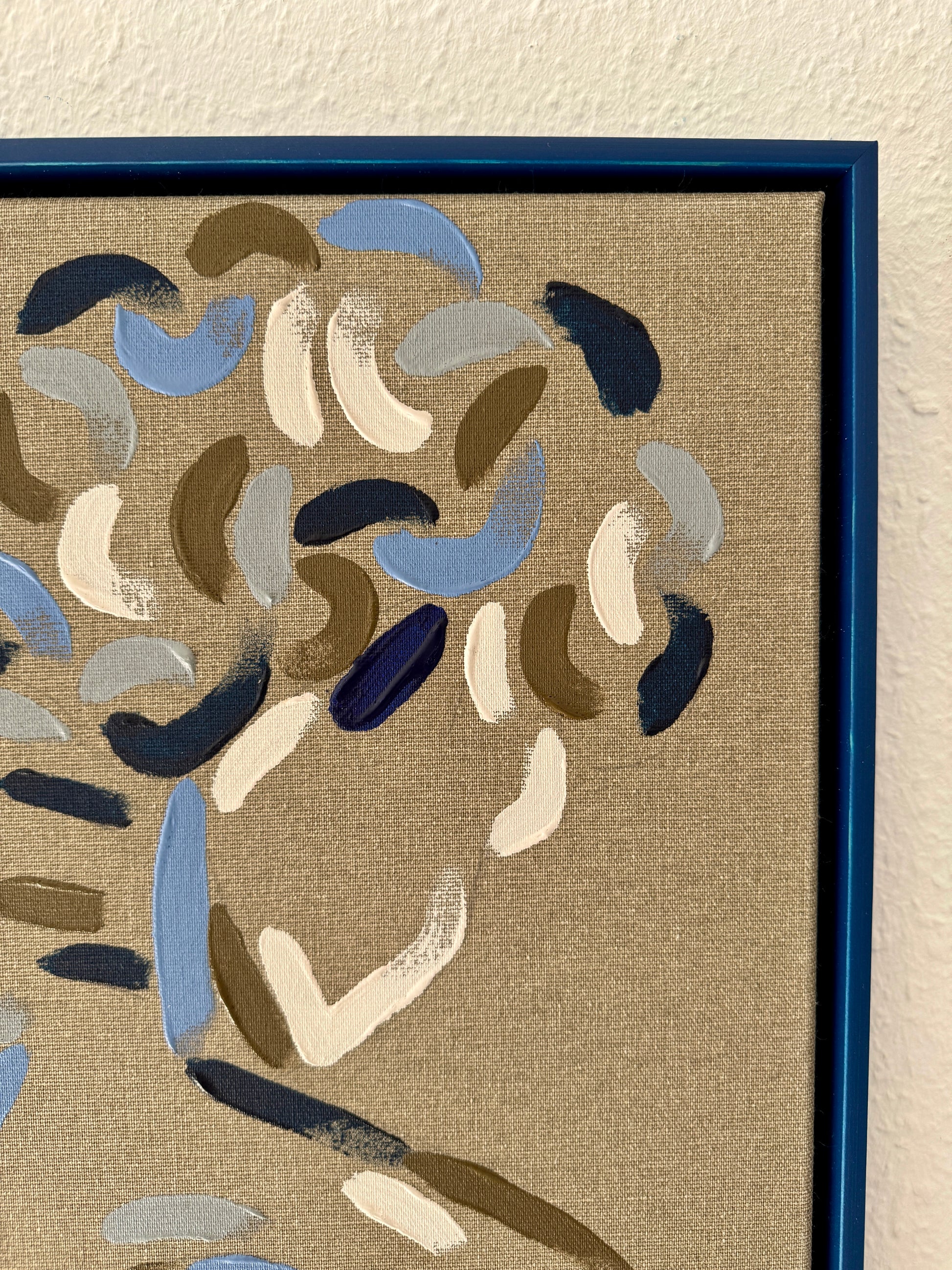Soft blues, greys, and deep brushstrokes reflect the calm rhythm of the sea — a quiet state of mind, painted in one take.