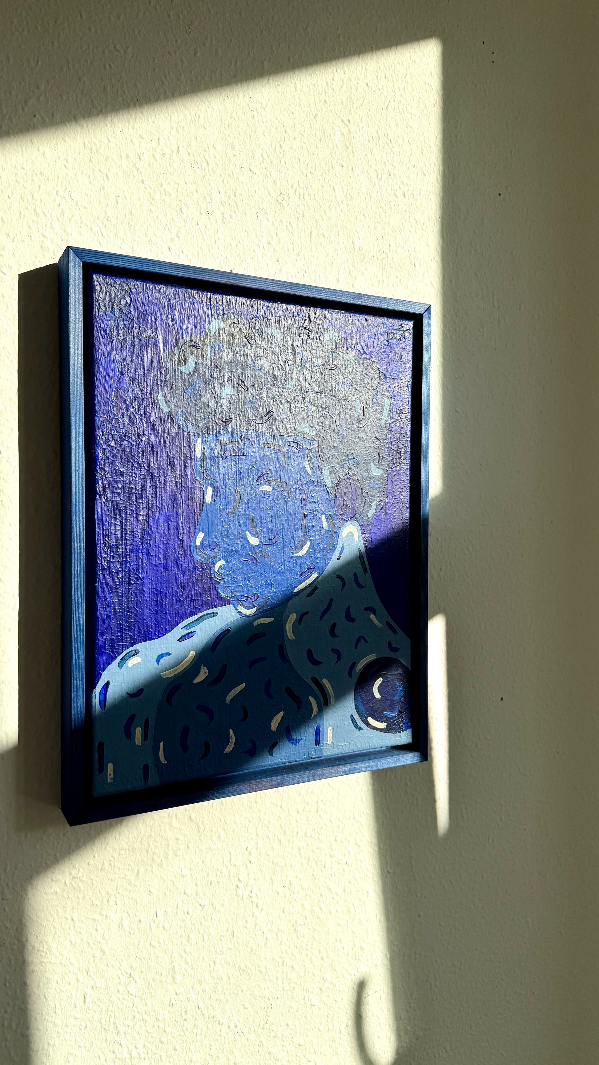 Framed in blue-stained wooden floating frame (final size approx. 33,5 x 43,5 cm)