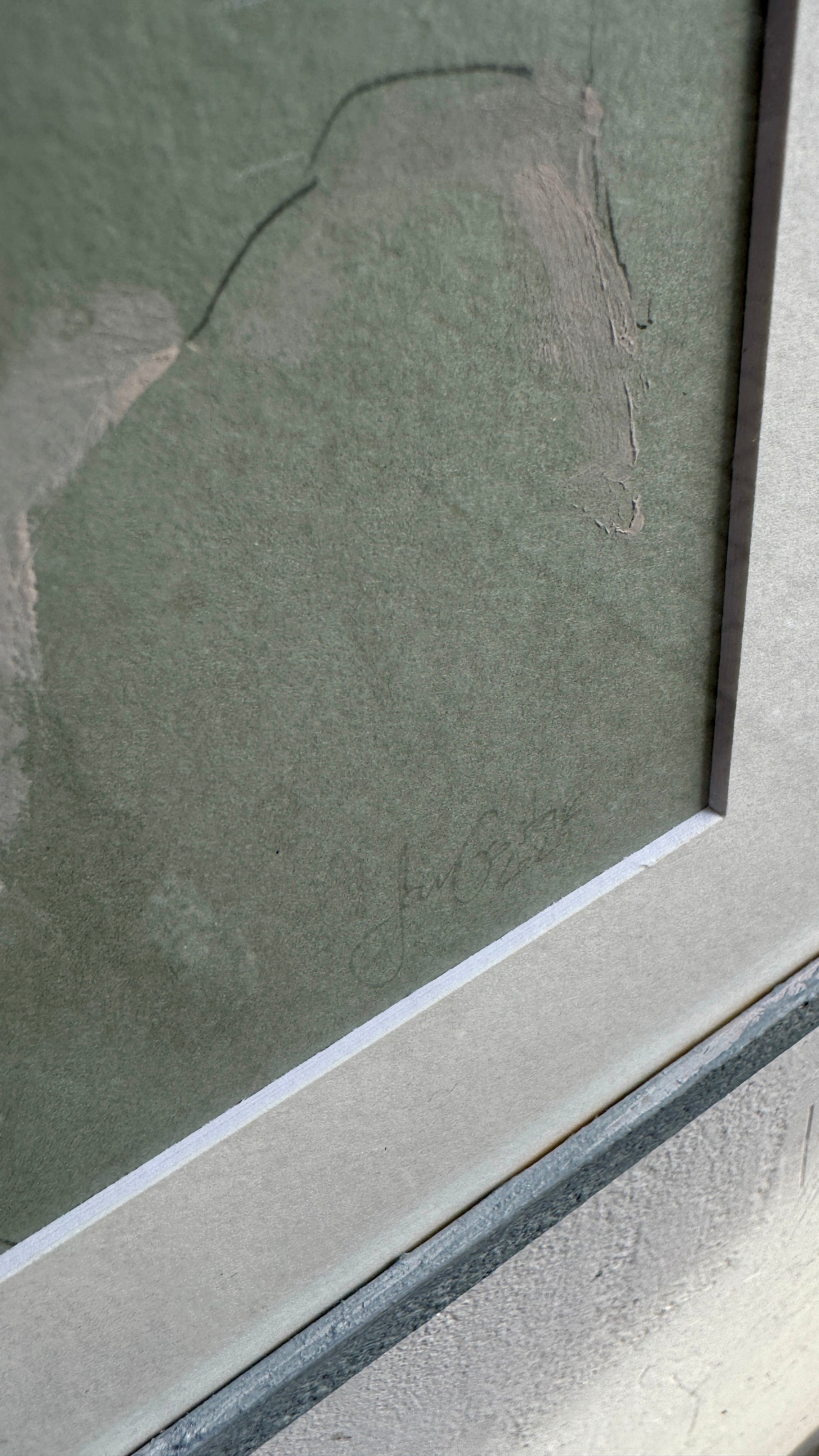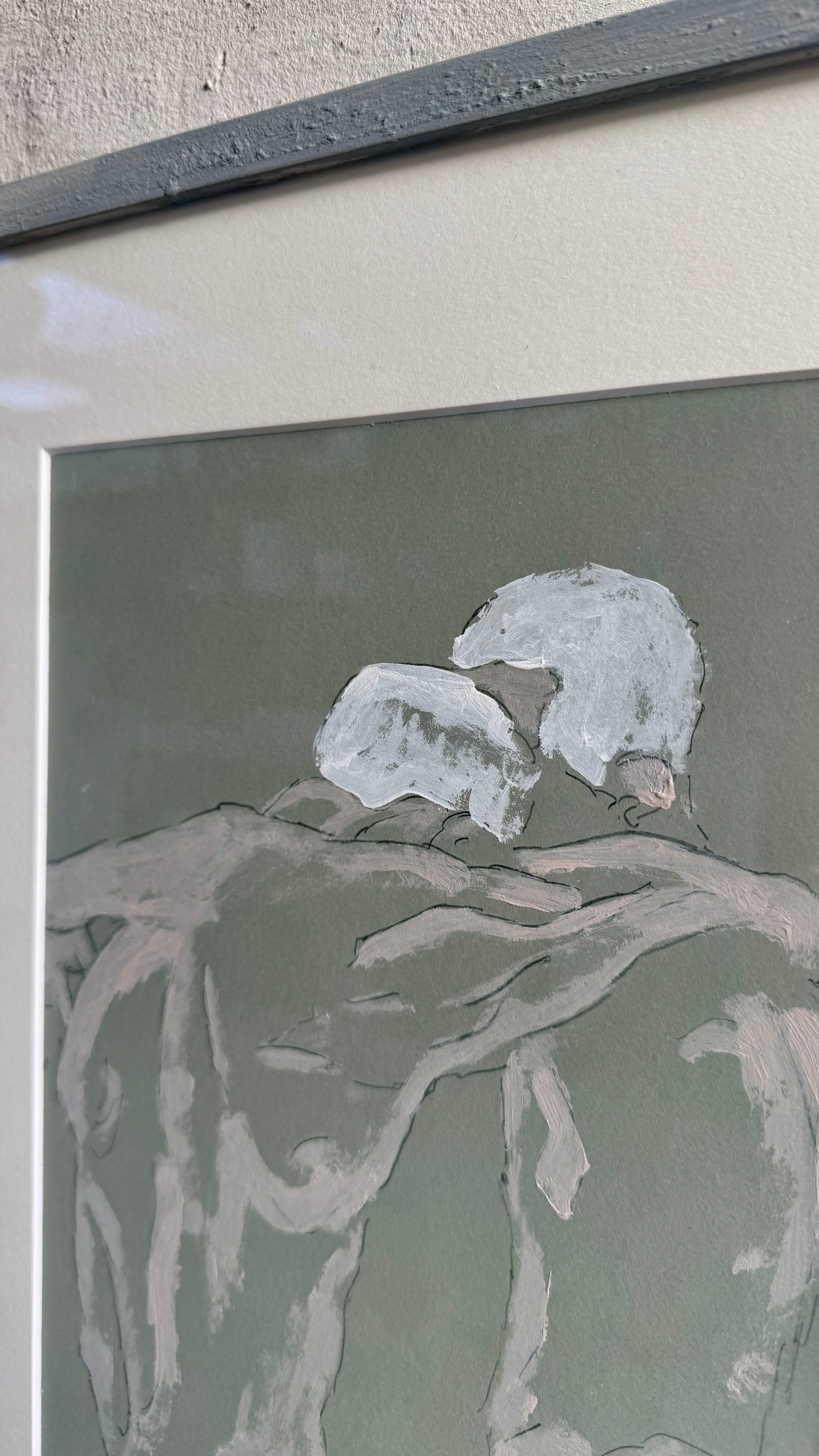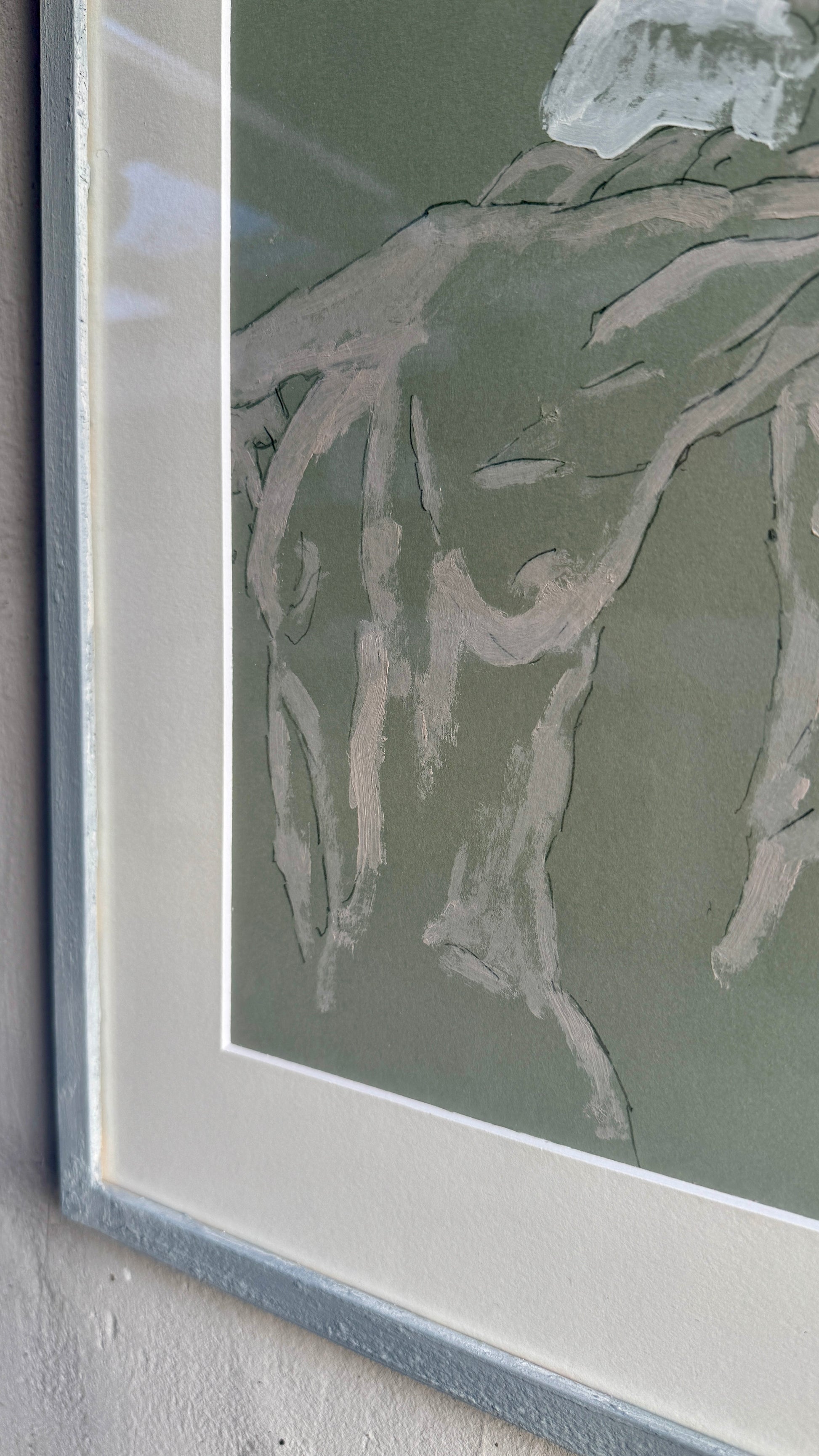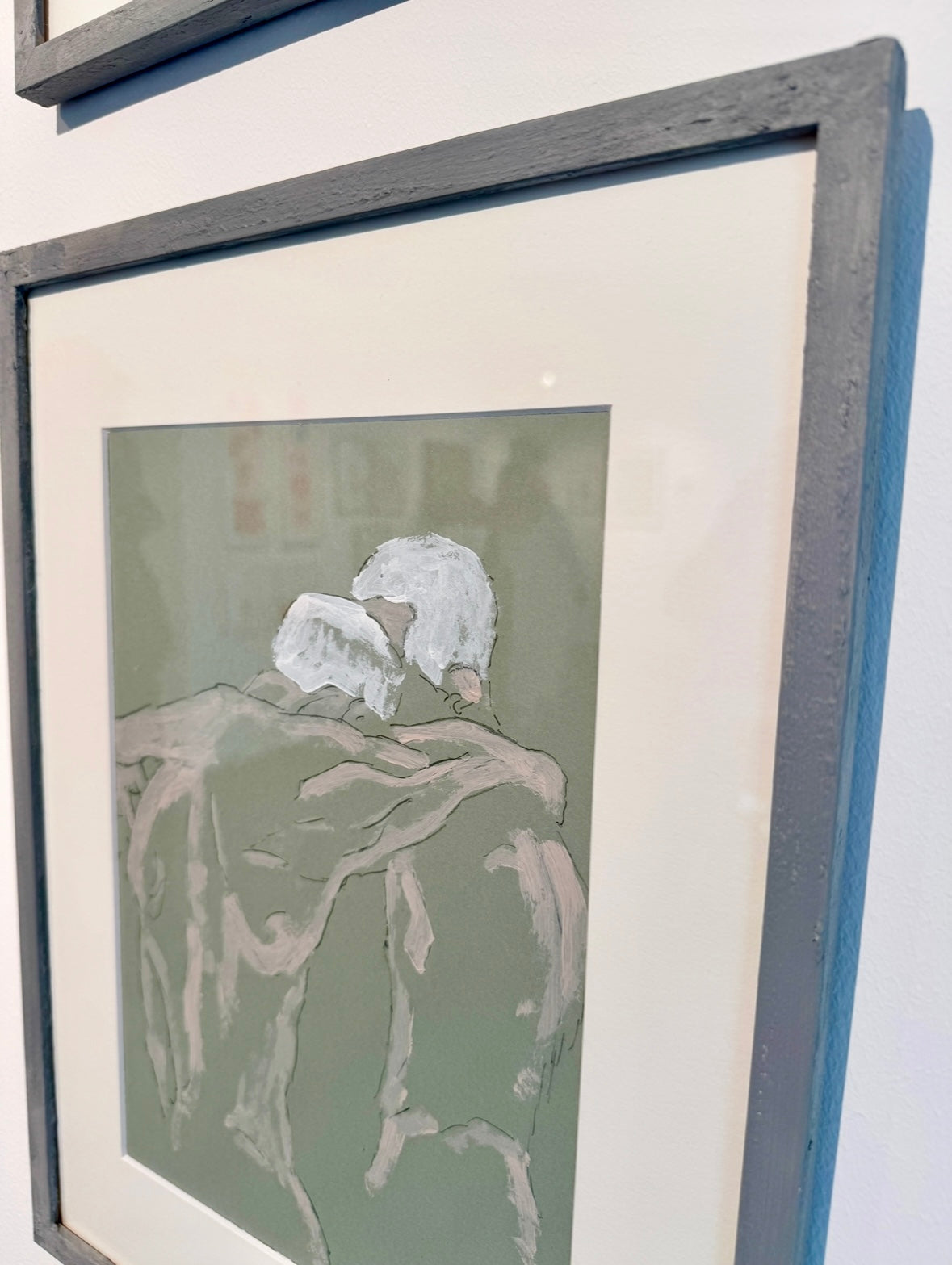 Each piece framed with white passepartout and 30x40 cm hand-painted wooden frames in textured chalk grey