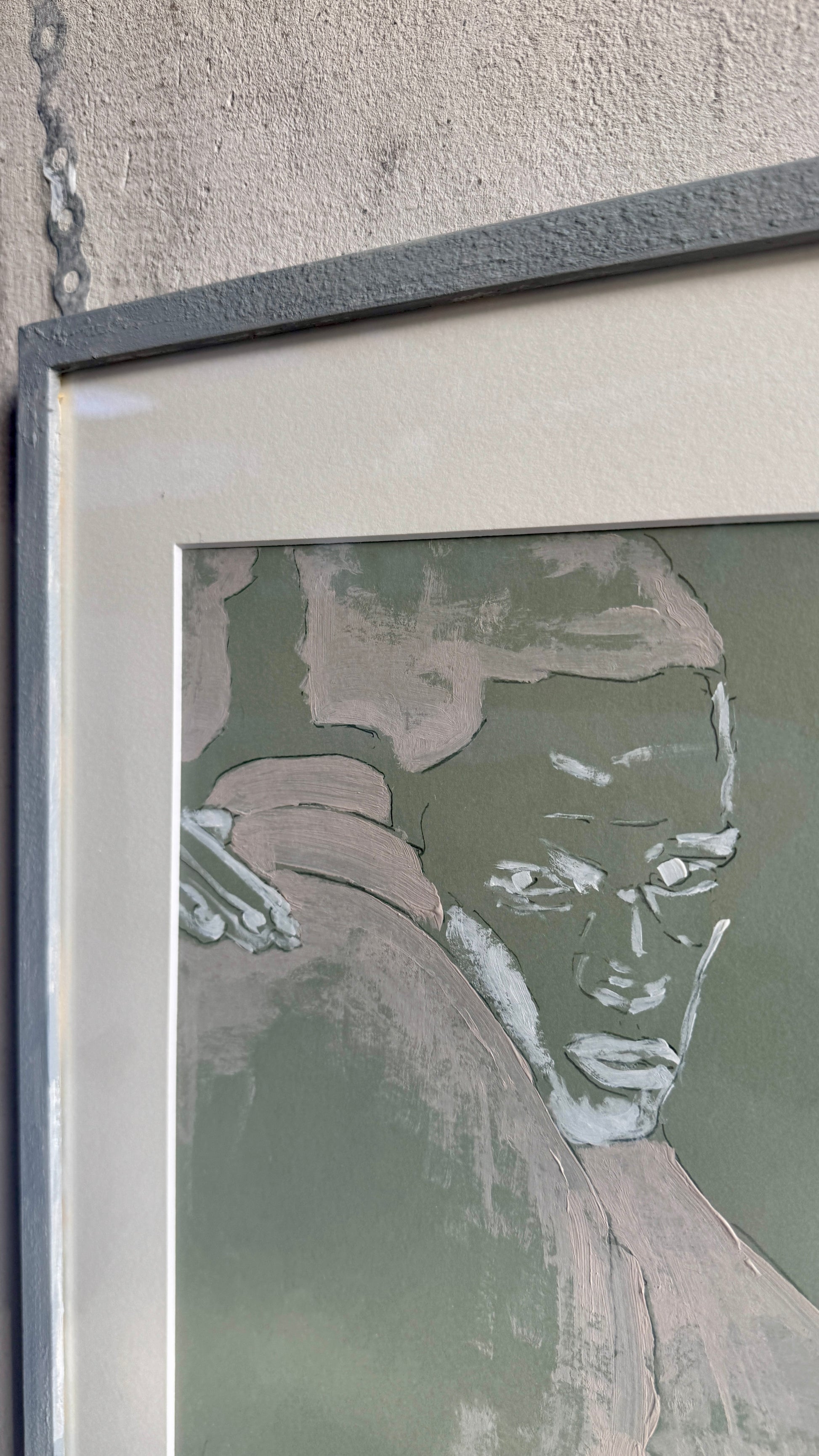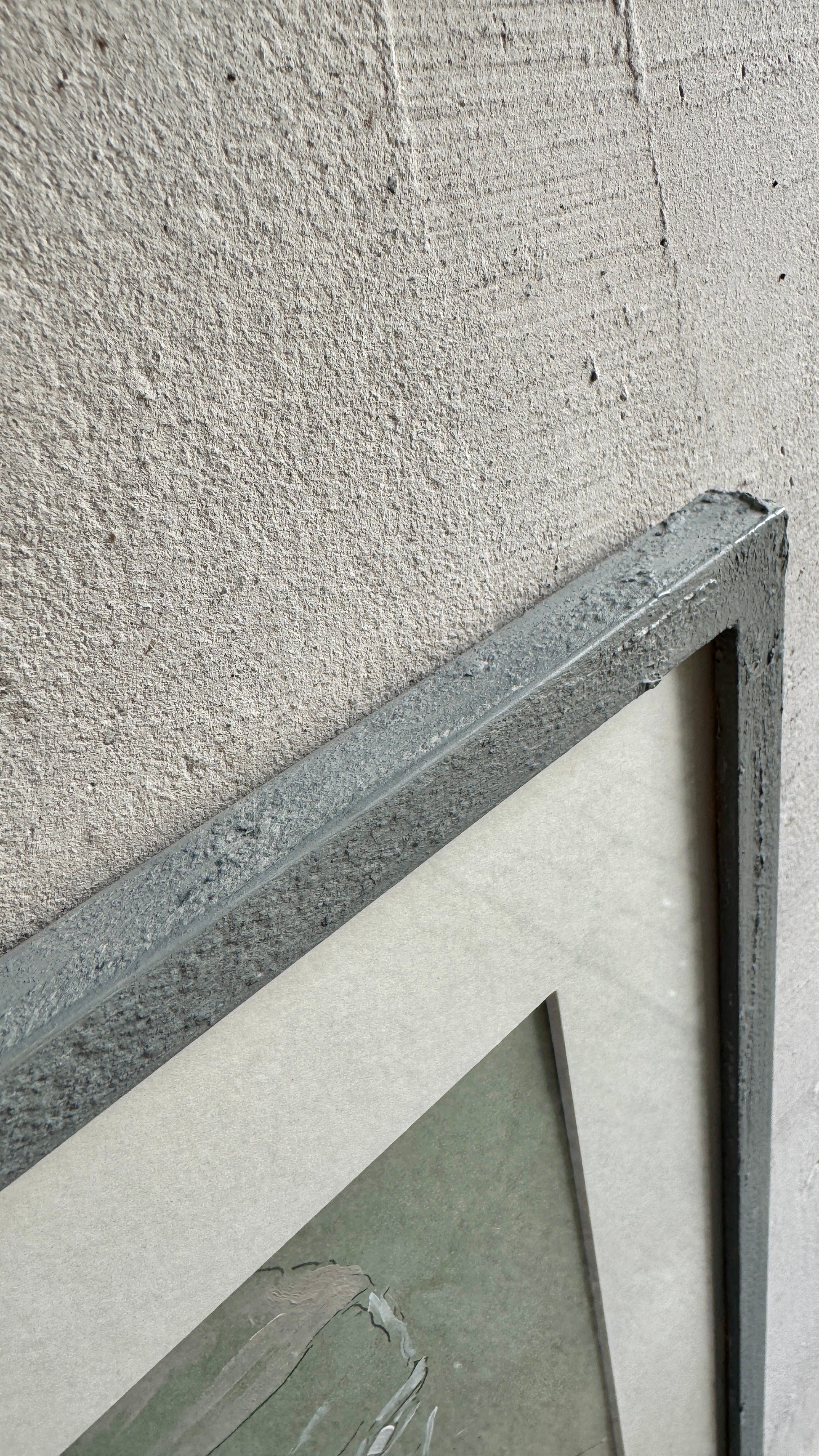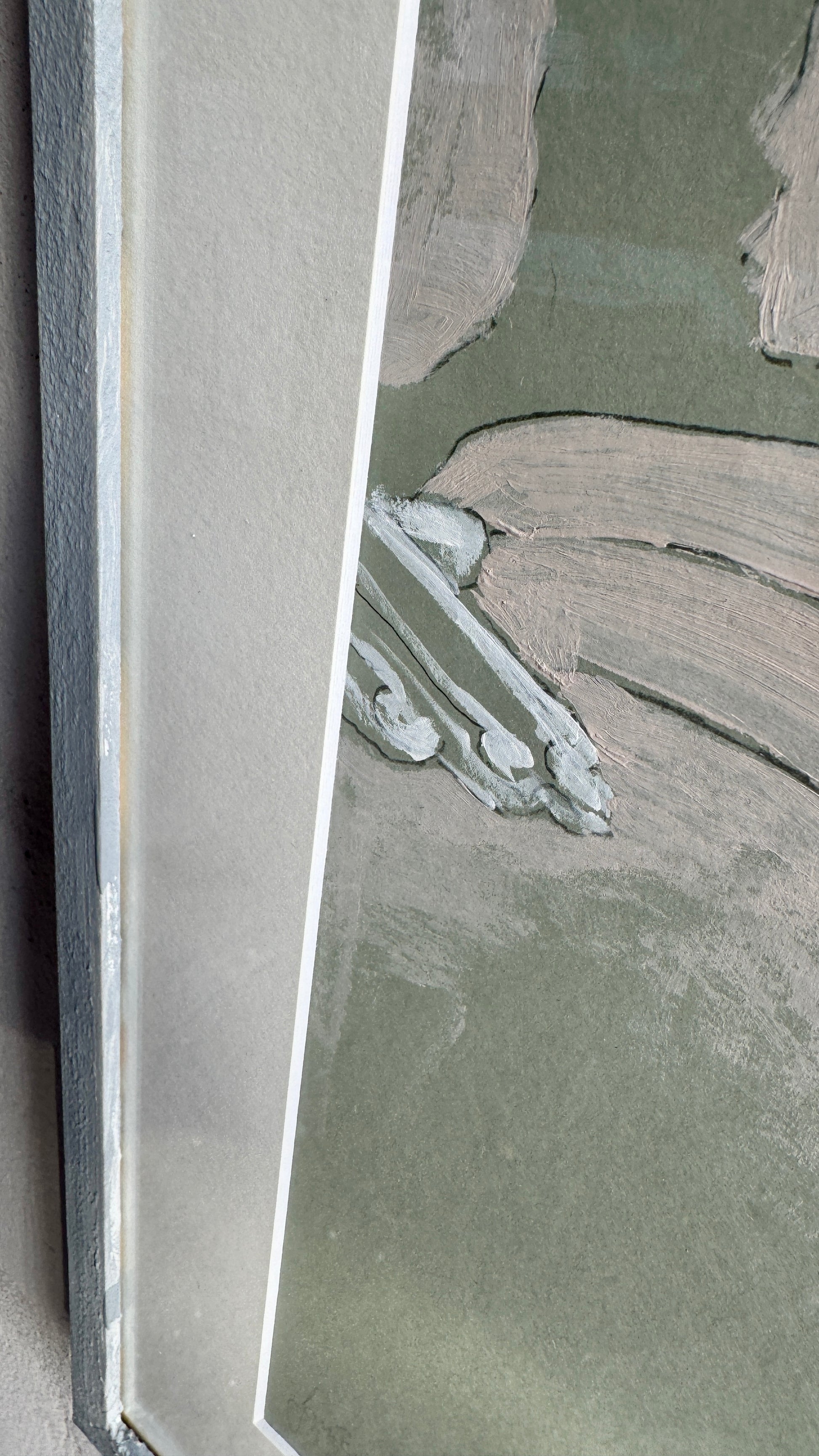 Each piece framed with white passepartout and 30x40 cm hand-painted wooden frames in textured chalk grey