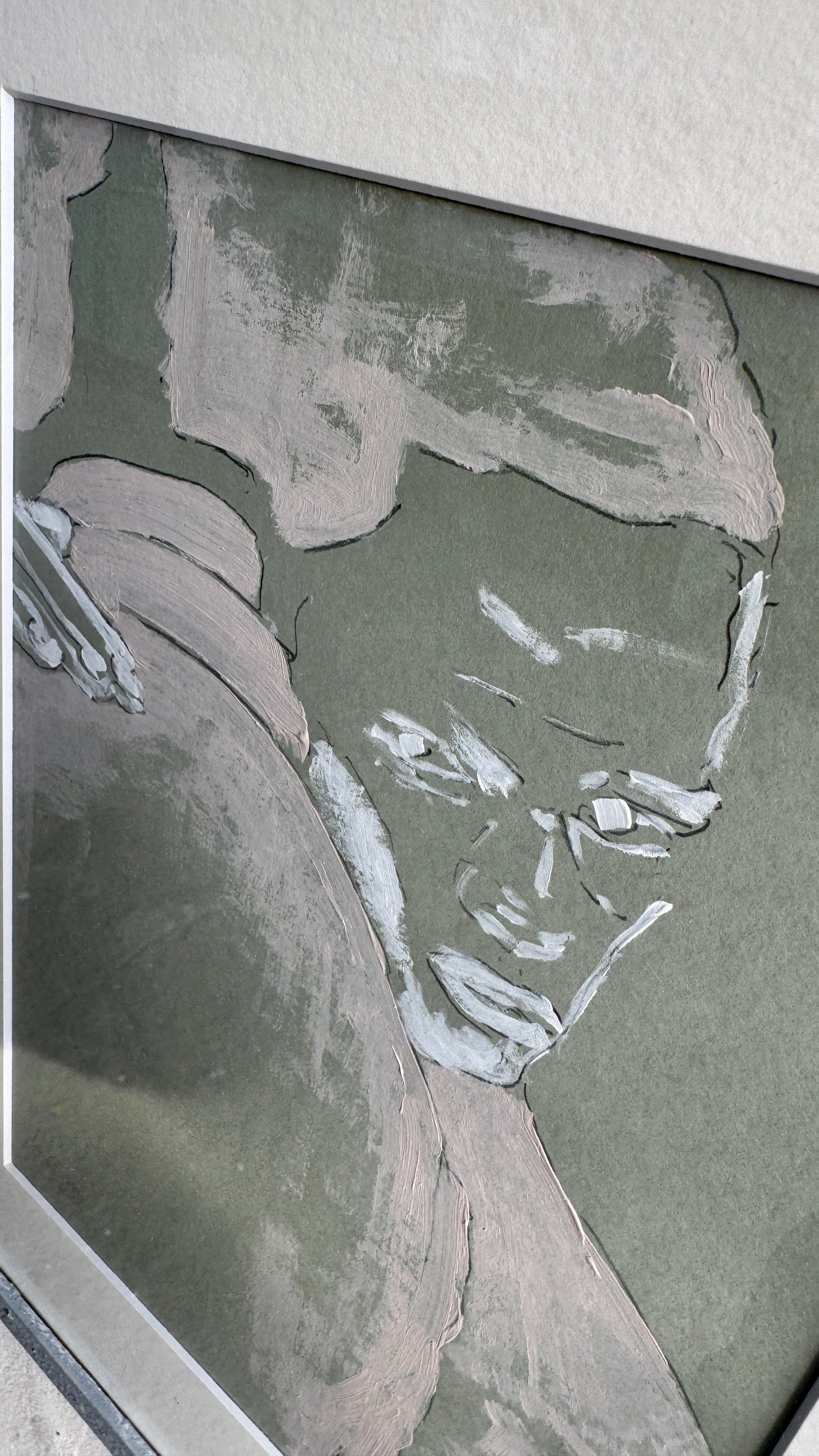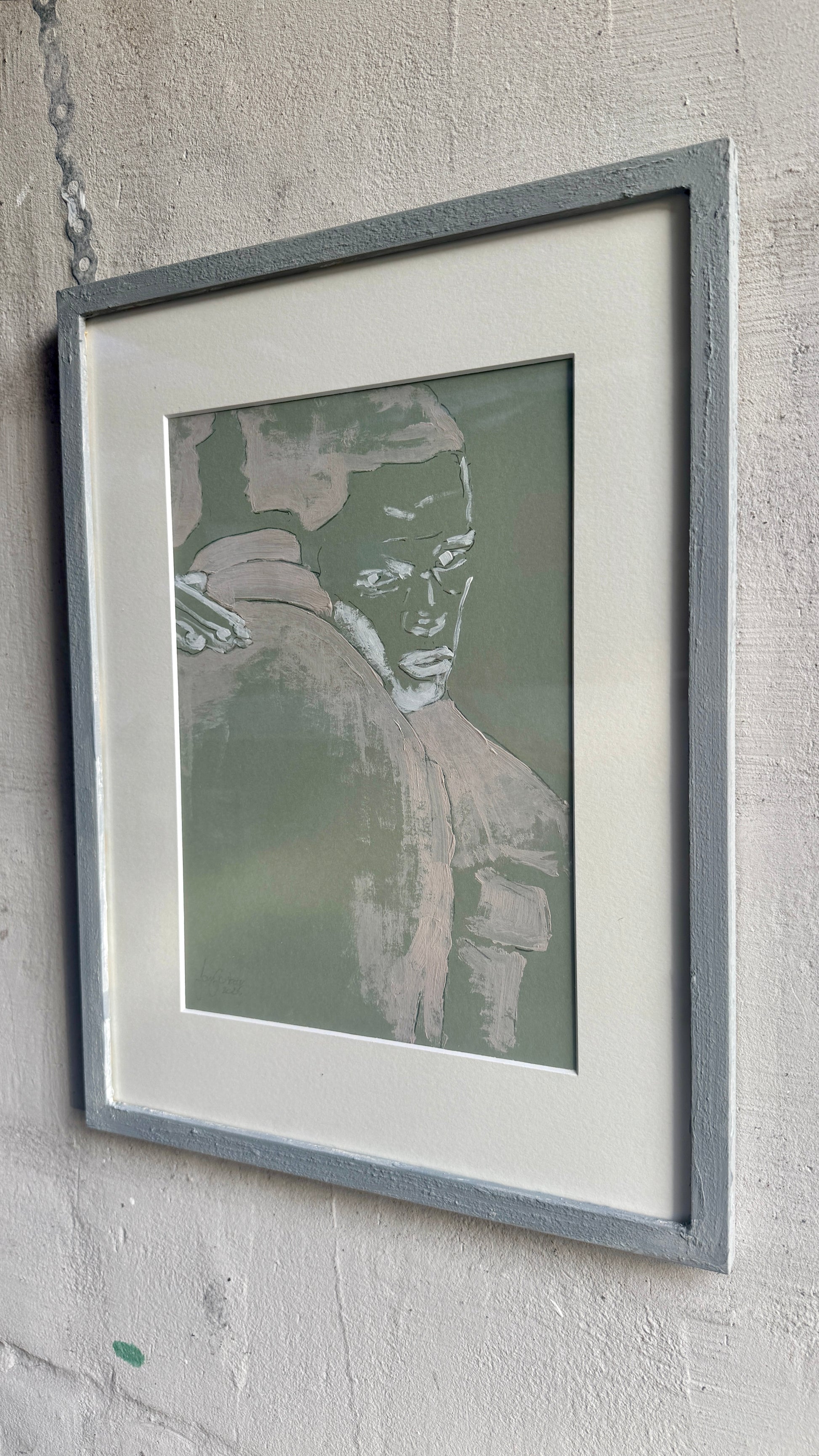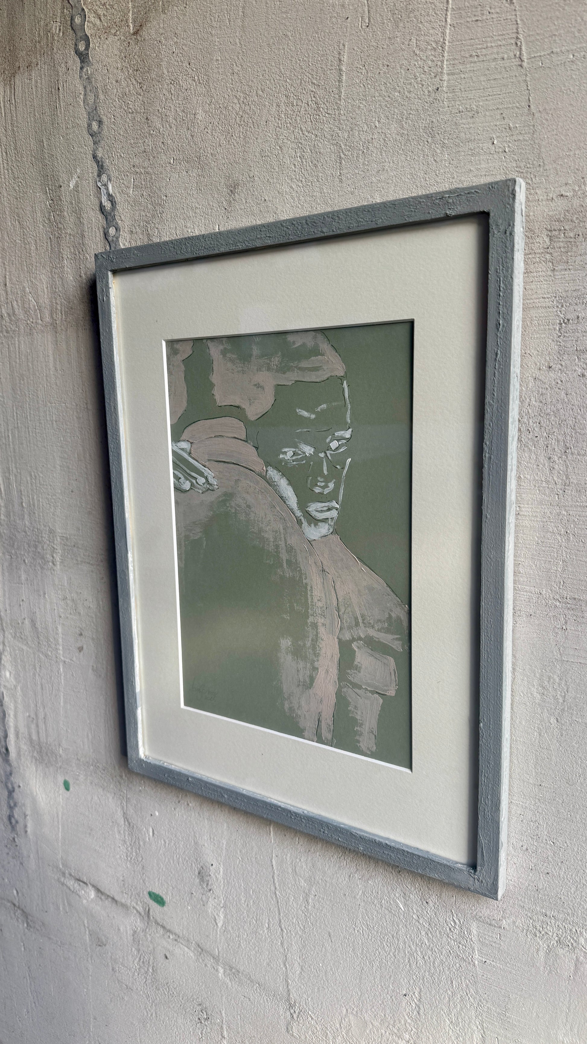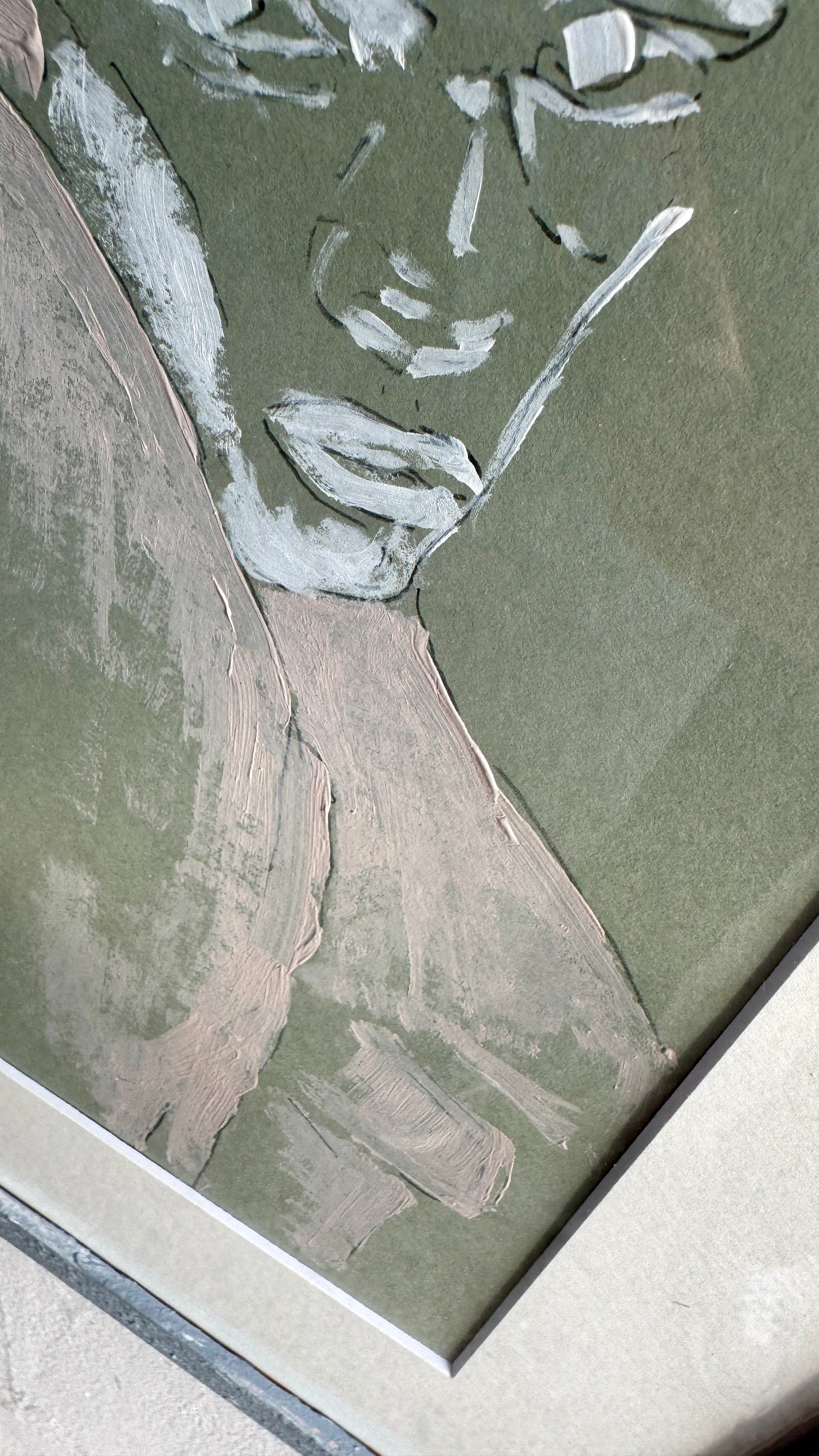 Each piece framed with white passepartout and 30x40 cm hand-painted wooden frames in textured chalk grey